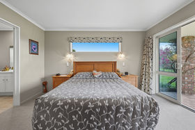 The master suite is generously sized, featuring a walk-in robe, ensuite, and double sliding doors that open to a private undercover patio. Three additional double bedrooms (all with wardrobes) share a well-presented family bathroom.