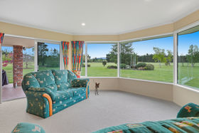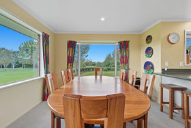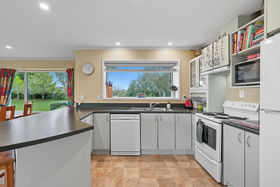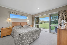 The solid brick home has timeless character and sits surrounded by manicured gardens and sweeping lawns. Inside, the open-plan kitchen, dining and living area forms the heart of the home, complete with a cosy fireplace, heat transfer system and panel heating for year-round comfort. Large north-facing windows flood the home with natural light and frame picturesque views over the gardens and towards Mount Oxford.